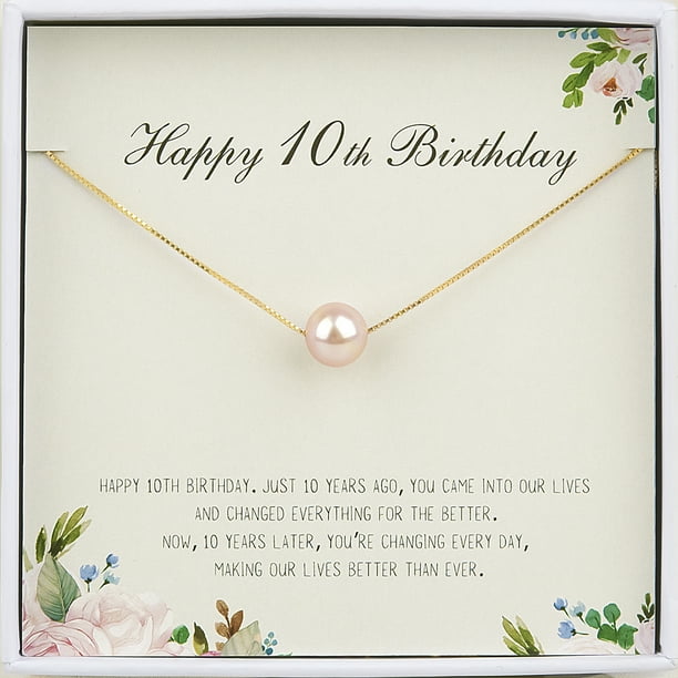 Anavia Happy 10th Birthday Pearl Necklace Card Gift Tenth Birthday Necklace For Girl Gift For 11 Year Old Girl Gifts Double Digits Birthday Pink Pearl Gold Chain Walmart Com